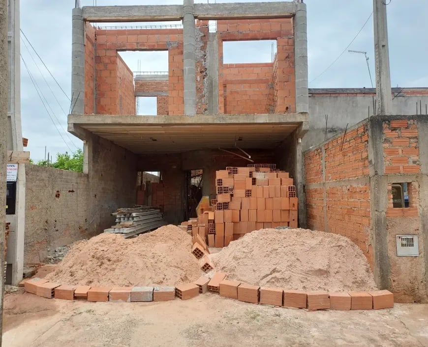 Pavimento superior a construir com área de 63,50, m², sendo 2 dormitórios com sacadas, banheiro social, sala home office com varanda, o comprador poderá alterar a construção superior